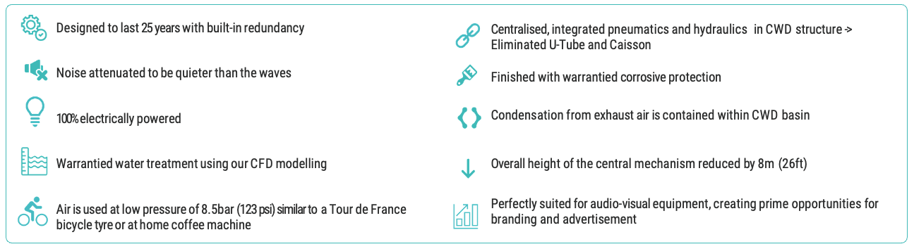 The largest stroke height (distance the plunger moves up and down to create waves) reached in the prototype was 4.8m. The commercial machine has been upgraded to a maximum stroke height of 5.5m, unlocking 20% of additional power that will set new standards.